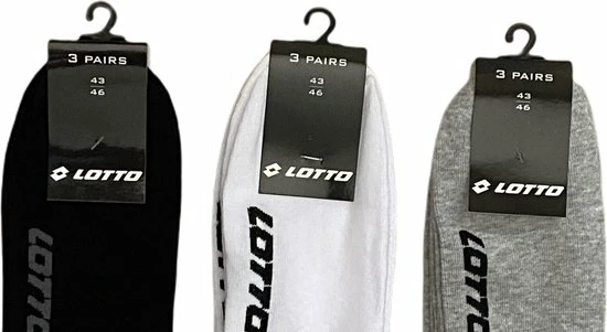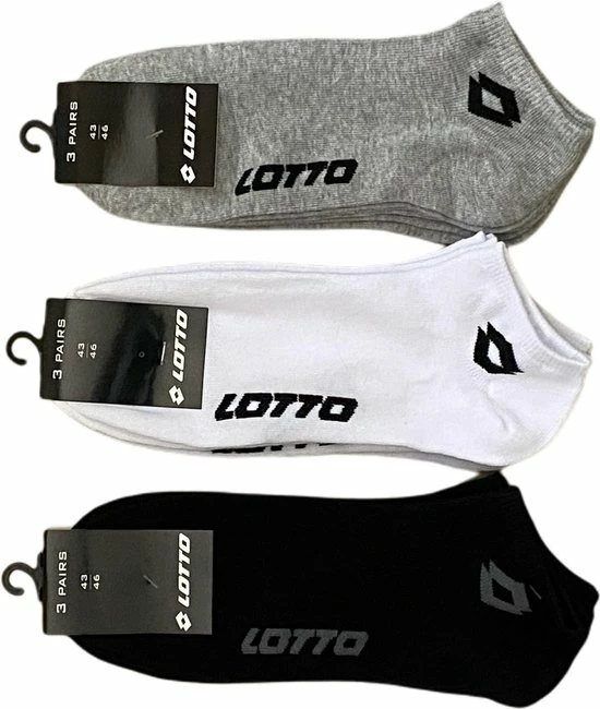 6+6+6 paar LOTTO Sneaker sokken. Wit-zwart-Grijs maat 43-46 Unisex BULK VOORDEEL !!