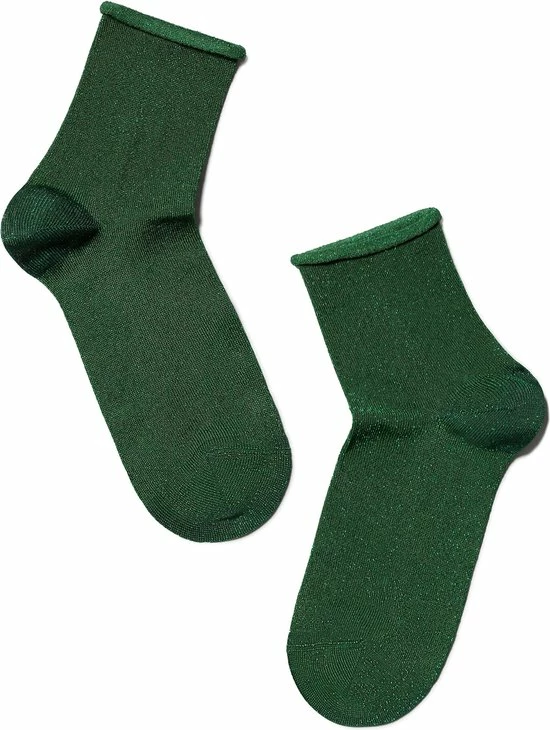 Glitter sokken opgerold boordje zonder elastiek in donkergroen | Stijlvolle all-over glitter look.