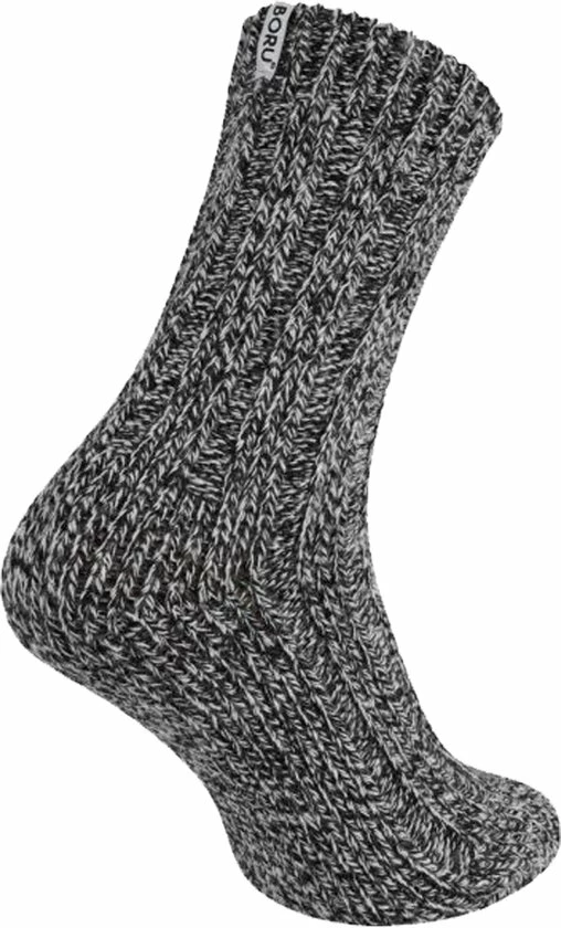 Deze wollen sokken van het merk Boru zijn voorzien van een dik gebreide rib motief. Door de toevoeging van 50% wol zul in de winter maanden geen last van koude voeten hebben. Aan de achterkant is de boord voorzien van een Boru merk tag wat de sokken erg hip maakt.
