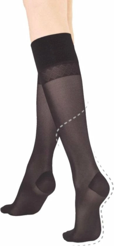 Caresse support 40 kniekousen ondersteunen je benen. Dankzij geleidelijke compressie technologie, met sterke druk op de enkel en aflopende druk naar je benen, wordt je bloedcirculatie ondersteund.