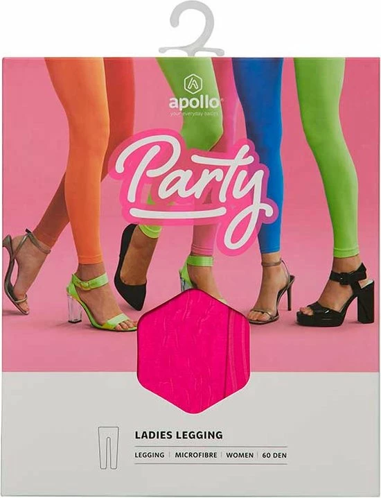 Dames party legging | 60 denier | Fluor rose | Maat XXL | Neon Legging | Gekleurde legging | Legging carnaval | Apollo