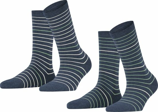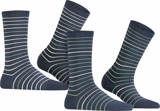 - ESPRIT Fine Stripe 2-pack damessokken zijn mid-rise, comfortabel en pluisvrij