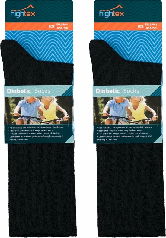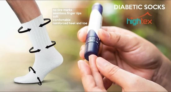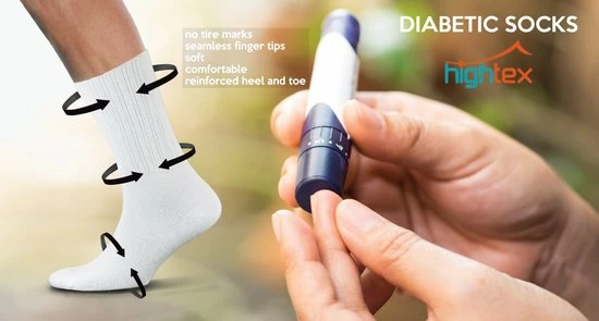PRODUCTOMSCHRIJVING: We ontwerpen deze diabetische sokken in Duitsland en vervaardigd in Turkije. Deze stoere wollen sokken zijn gecertificeerd volgens de OEKO-TEX Standard. De fijnste wol van hoge kwaliteit zorgt voor de perfecte kwaliteit. Hightex diabetische sokken gemaakt van natuurlijke stoffen die worden aanbevolen bij aandoeningen van de bloedsomloop van voeten en spataderen. Deze sokken hebben een naadloze teen en een niet-bindende bovenkant om het risico op infectie, voetdruk en blaarvorming te verminderen, vernauwing en drukplekken te voorkomen en de bloedcirculatie in de benen te verbeteren. Ze zijn ideaal voor diabetici.