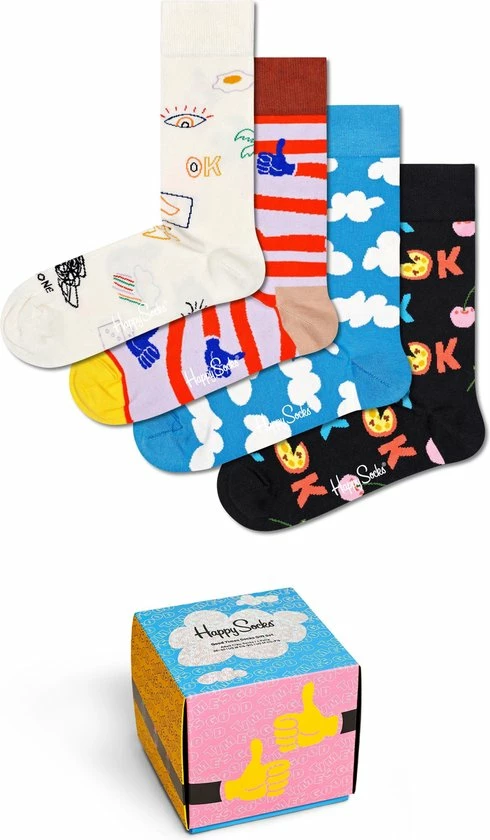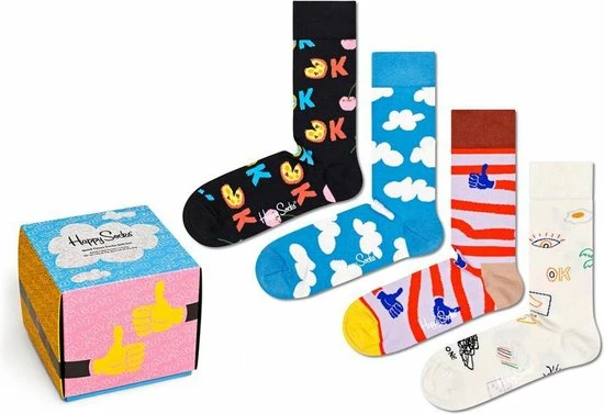 4 paar sokken van Happy Socks voor heren & dames. Deze sokken zijn gemaakt van katoen