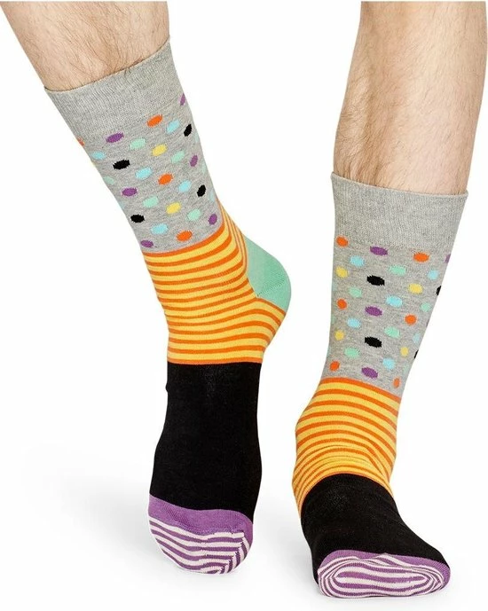 De Stripes & Dots Socks van Happy Socks zijn vrolijke sokken met gekleurde stipjes en streepjes erop. De sokken zijn gemaakt van gekamd katoen wat ervoor zorgt dat ze erg comfortabel zitten.