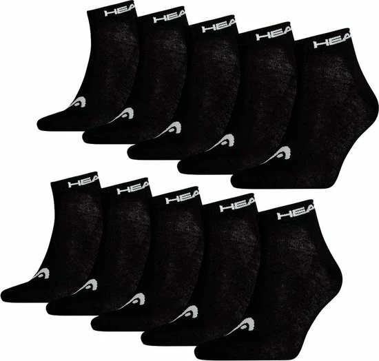 HEAD Quarter Sokken – 10 Paar zwarte enkelsokken – Unisex