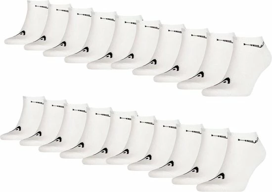 HEAD Sneaker Sokken – 20 Paar witte sneakersokken – Unisex