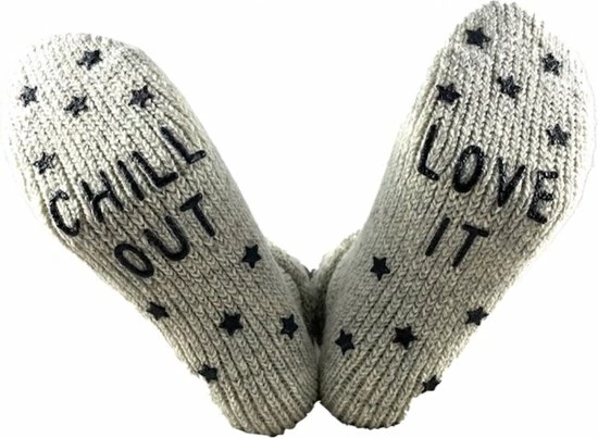 - De siliconen pads hebben een opdruk met op de ene sok ”love it” met sterren en de andere ”chill out” met sterren