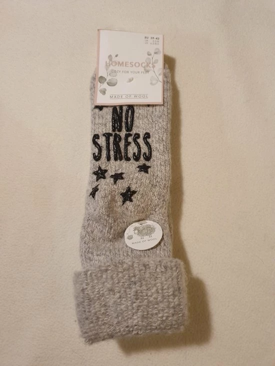 45% wol 25% polyamide 17% acryl 10% polyester 3% other fibres, heerlijk warme huis sok met antislip