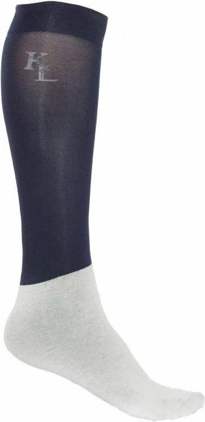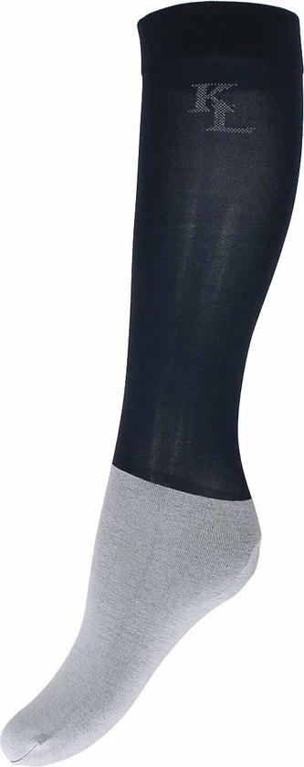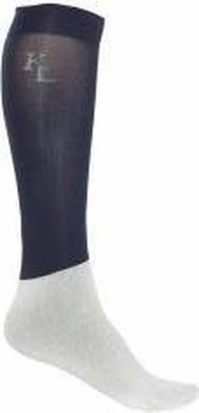 Bekende kniekous van kingsland, 61% nylon, 33% cotton, 6% spandex, extra dun panty-materiaal rondom de kuit om zo gemakkelijk in- en uit de rijlaarzen te stappen, verstevigd voetgedeelte in contrast kleur, geen voorgevormde voet, voorzien van kingsland-logo aan de buitenzijde, verpakt per 3 paar.