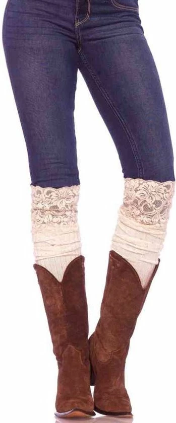 Leg Avenue. Geribde over de knie slobsokken met een gebreide ‘confetti dot’ en kanten top. — Materiaal: 49% Katoen, 35% Polyester, 13% Nylon, 3% Spandex