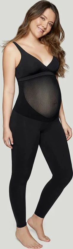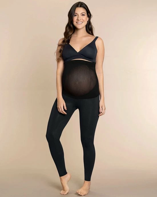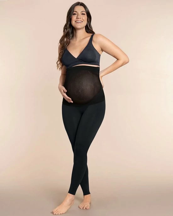 Deze flexibele legging houdt je comfortabel en ondersteund tijdens je zwangerschap. Bevestig je bh-bandjes aan de ingebouwde lussen voor extra steun. Deze legging past perfect bij jurken en lange shirts.
