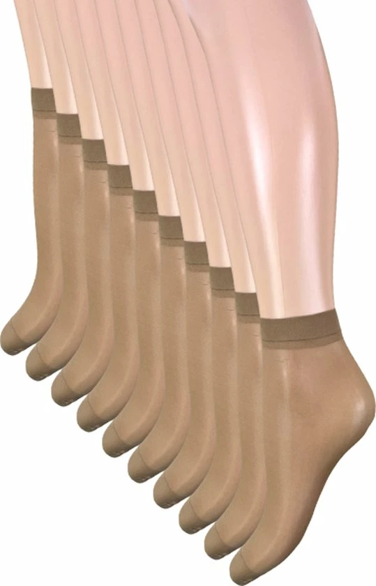 Een set van 10 paar pantysokjes in de kleur hazel. Deze panty is gemaakt van een zachte en elastische 20 denier pantystof die comfortabel aanvoelt. De panty heeft een basic hazel kleur. Deze comfortabele basic pantysokken zijn ideaal voor dagelijks gebruik. De dames panty sokjes zijn halfglans en transparant. Deze mooie basic pantysok is geschikt voor elke gelegenheid en wordt daarom als voordeelverpakking van maar liefst 10 paar geleverd. De dames panty kniesokjes zijn one size.