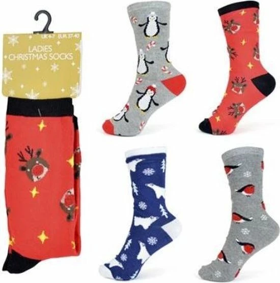 Set van 4 paar leuke kerstsokken voor dames.