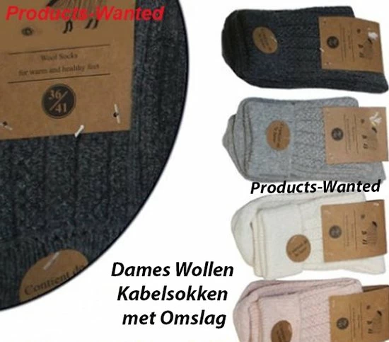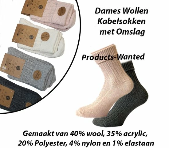 Highlights * 4-Paar Wollen Kabelsokken met Omslag in 2 Kleuren * In kleuren 2 stuks ecru en 2 stuks antracite * Merk Boru * Voor dames * De wol houdt je voeten heerlijk warm * Ultiem draagcomfort * Ideaal voor de koudere maanden * Koude voeten zijn verleden tijd * Pure verwennerij voor de voeten * Samenstelling zorgt voor een zachte en duurzame kwaliteit * Ideaal voor dagelijks gebruik * Wol helpt bij het absorberen van vocht, ademt en beschermt tegen zweet * Met deze sokken ben je verzekerd van heerlijke warme voeten * Wasbaar op 30 graden * Gewicht 66 gram * Gemaakt van 40% wool, 35% acrylic, 20% Polyester, 4% nylon en 1% elastaan * One size ( ongeveer 36- 41) ,, Deze wollen kabelsokken met omslag van Boru zijn de perfecte sokken voor elke gelegenheid. De sok heeft een omgeslagen boord met een geribbelde patroon. ,,dit zorgt ervoor dat het draag comfort hoog is en heerlijk zacht aan de voeten voelt