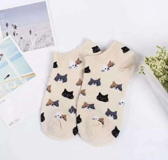 Katoenen enkelsokken voorzien van katten motief.