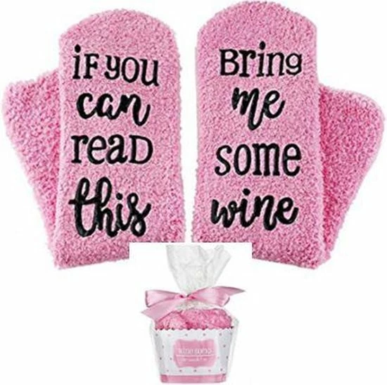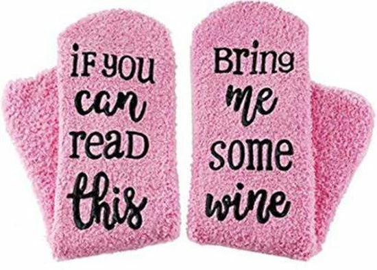 Grappige huissokken met de tekst: If You Can Read This Bring Me Some Wine.