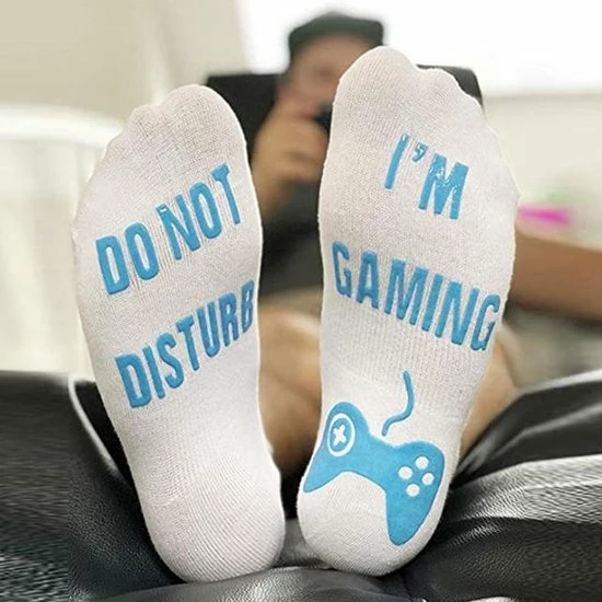 Deze I’m Gaming sokken zijn ge-wel-dig voor alle gameliefhebbers! Ben jij of ken jij iemand die verslingerd is aan zijn/haar spelcomputer? Dan zijn dit dΓ© sokken voor een avondje gamen. De sokken hebben een opdruk van een gamecontroller met daarbij de geniale tekst ‘Do not disturb, I’m gaming’. Origineel Γ©n grappig, leuk om cadeau te geven of te krijgen!