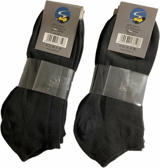 Socke ยฉ|Sneakersokken|Enkelsokken|”Kleur:Zwart”|Maat 36/42|4 Paar
