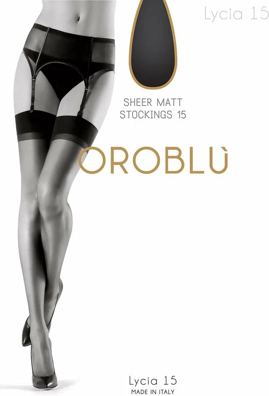 15 denier transparante jarretelkous (hold-up) met een subtiele satijnglans en een brede boord. Deze kous moet gedragen worden in combinatie met een jarretelgordel.