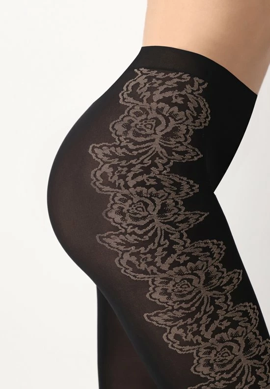 Dekkende panty met bloemenpatronen die geinspireerd zijn op bloemen uit de Italiaanse kunst.