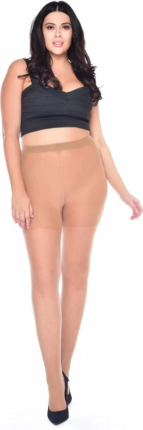 30 Denier grote maten panty Sun Tan is de eerste panty die echt ruim valt. Op de bovenbenen is genoeg stretch. Deze panty is mooi dun waardoor het been door de panty heen gezien wordt. Doordat we gebruik maken van 30 denier garen is de panty erg sterk. Het zitvlak is extra hoog.