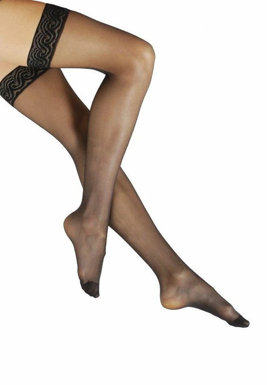 10 denier hold ups in de kleur Barely Black deze Nylons zijn mooie glansende kousen van Pretty Polly. Deze Stay-up heeft een mooi kantenboord met twee plakstrips, zodat ze goed blijven zitten.