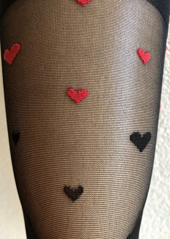 Deze Pretty Polly Sheer Heart panty heeft hartjes over het hele been die subtiel veranderen in rode hartje aan het bovenbeen.