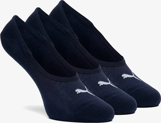 Deze handige PUMA Unisex footie sokken zijn verkrijgbaar als 3-pack. Door de ideale pasvorm draag je sokken, zonder dat ze zichtbaar zijn in je sneaker. De sokken zijn verkrijgbaar in de kleur navy voorzien van een wit PUMA logo.