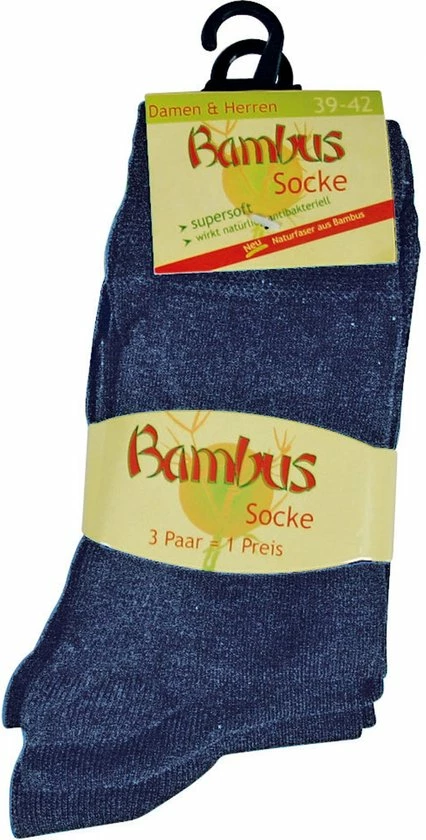 3 Paar bamboesokken met een normale schachtlengte, de sokken bestaan uit 75% bamboevezel. Bamboe sokken zijn sokken zonder elastiek in de boord en zonder teennaad. Doordat de boord is gemaakt van een zogenoemde dubbele weving zal deze dus niet afzakken en zeker ook niet knellen.