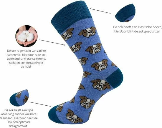 - Gemaakt van zachte katoenmix. Hierdoor is de sok ademend, anti-transpirerend