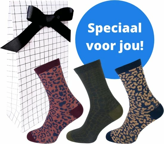 Teckel damessokken met leuke gekleurde luipaard prints zonder voelbare teennaad in cadeauverpakking