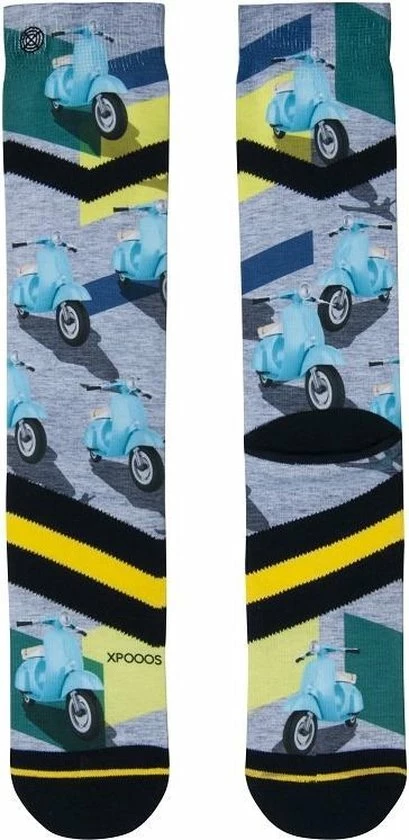 Dol op scooters? Dan moet je deze geweldige sokken van XPooos in je kleding accessoire kast hebben. Niet alleen de top uitziende print van deze sok met een retro scooter maar ook de kleuren. Waan jij je al in een warm land met de wind in je haar op zo’n stoere scooter? Ook de kwaliteit en het comfort van XPooos sokken moet je gewoon ervaren. Geef je voeten de zorg die ze nodig hebben. Handgeketteld. Geen naden en 100% katoen van binnen.